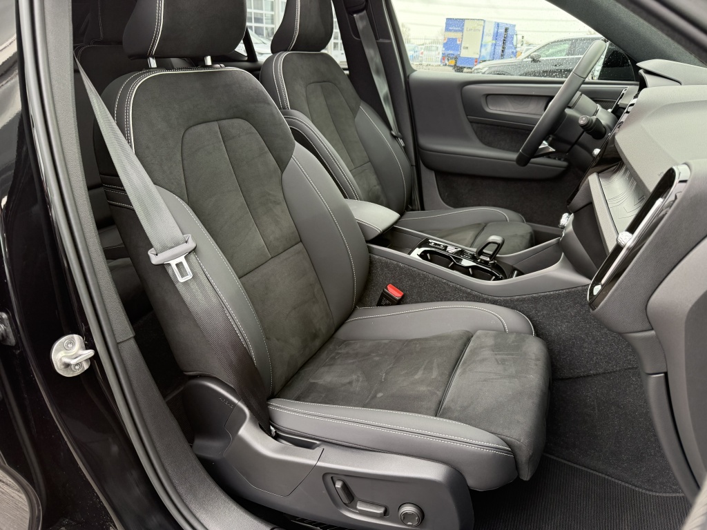 Daarnaast is deze Volvo XC40 uitgerust met een draadloze telefoonlader, zodat u altijd verbonden blijft zonder gedoe met kabels. Zowel de bestuurder als de passagier genieten van een elektrisch verstelbare stoel, met stoelverwarming voor extra comfort tijdens koude dagen. Het panoramadak laat veel natuurlijk licht binnen en creëert een ruimtelijk gevoel in het interieur.