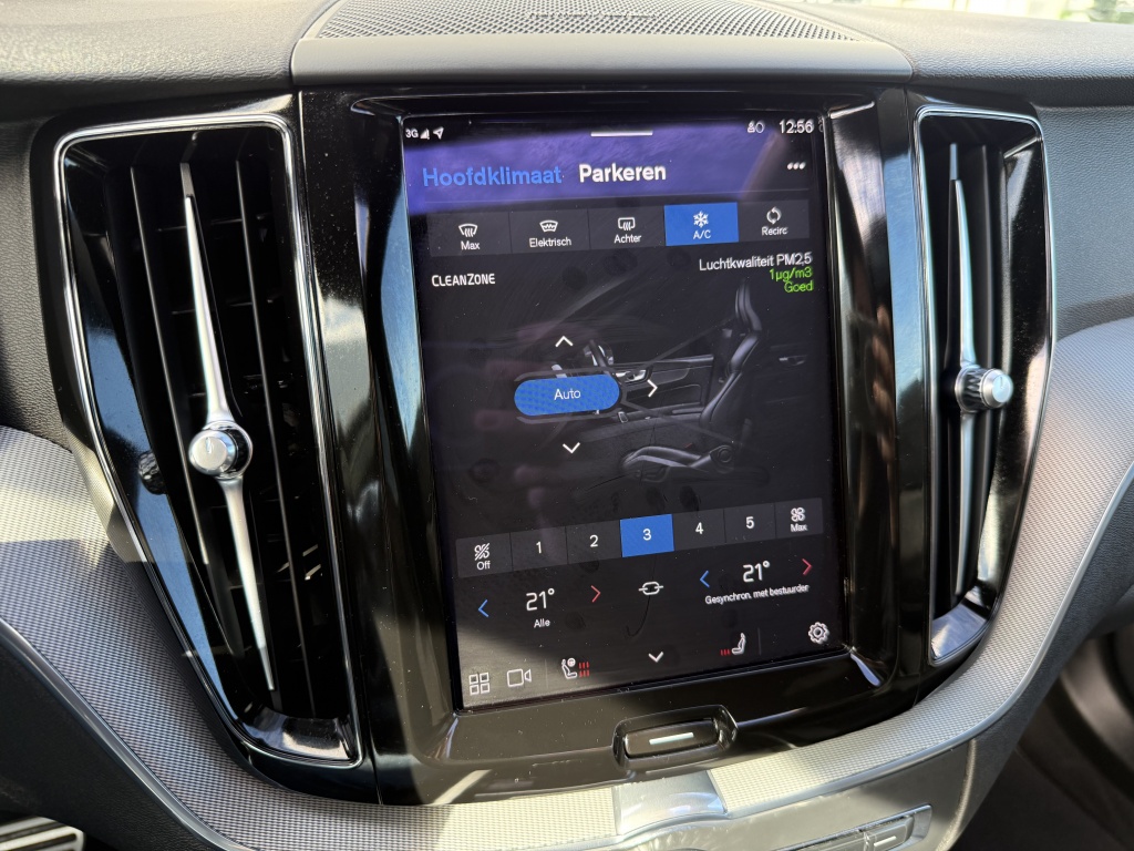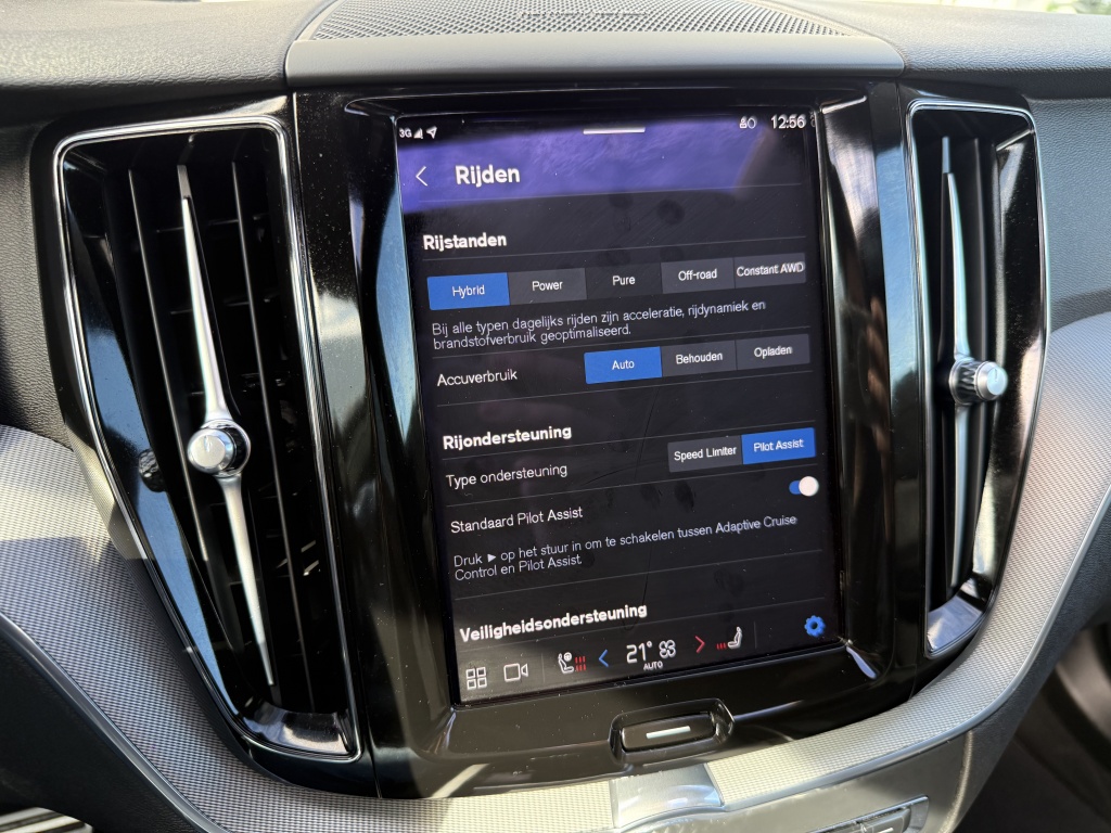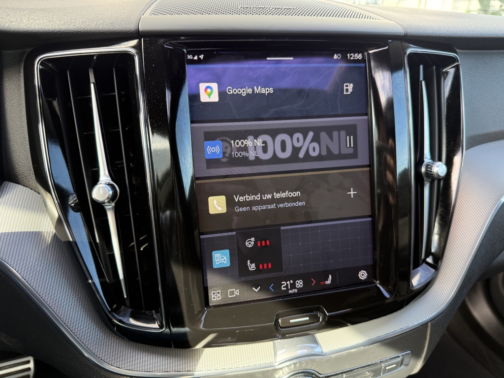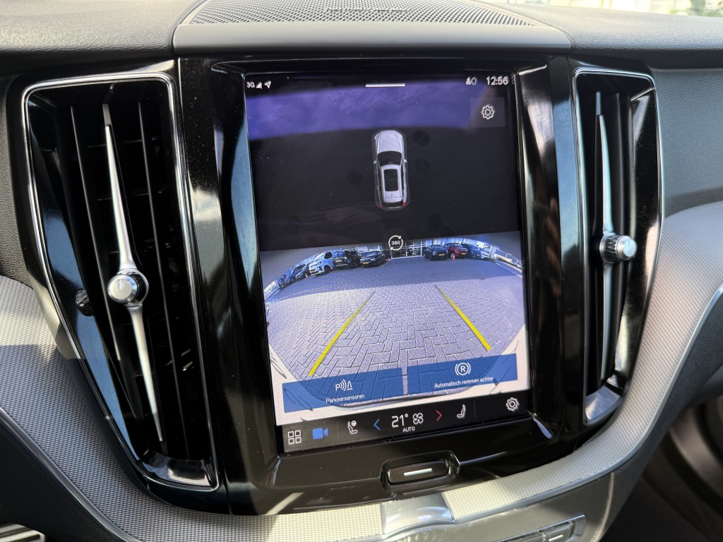 Een van de meest indrukwekkende kenmerken van deze Volvo XC60 is de Adaptieve Cruise Control met Pilot Assist. Dit systeem houdt niet alleen automatisch de juiste afstand tot uw voorganger, maar kan ook helpen bij het sturen en centreren van de auto op de weg, wat zorgt voor extra veiligheid en gemak tijdens lange ritten.