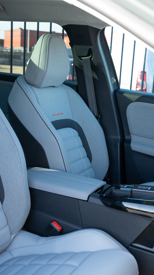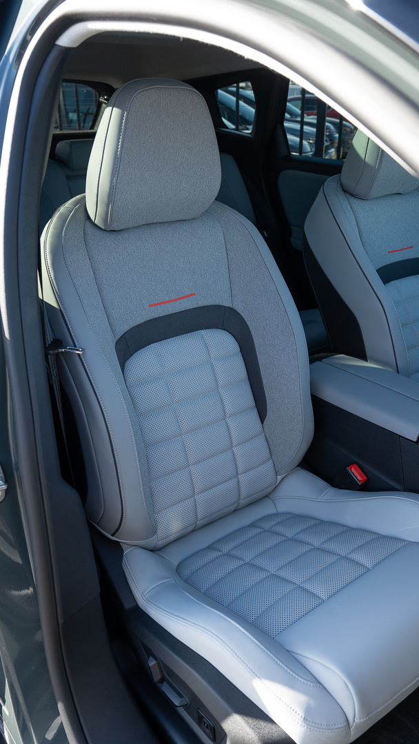 De stoelen zijn hier ook verwarmd, keurig afgewerkt met plenty hoofd- en beenruimte, USB-C-poortjes, bekerhouders en aflegmogelijkheden voorhanden.