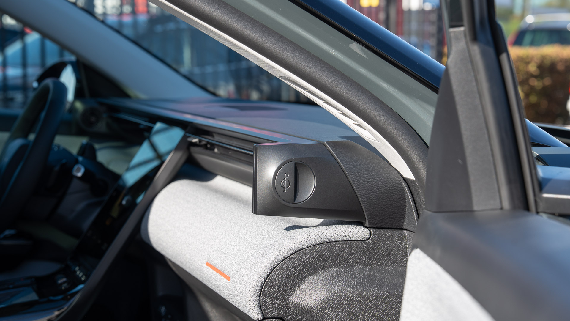 Bij zo’n crossover stap je altijd gemakkelijk in en ik laat me verrassen door een vooruitstrevend dashboardlandschap dat er prachtig uitziet, maar aan de bovenkant voorzien is van een harde kunststof. Dat wordt onmiddellijk een heel eind goedgemaakt door het mooie, onderste stoffen gedeelte, dat ook weer terugkomt op de deurpanelen. Een beetje bijzonder zijn de prominent aanwezige tweeters op de hoeken van het dashboard.