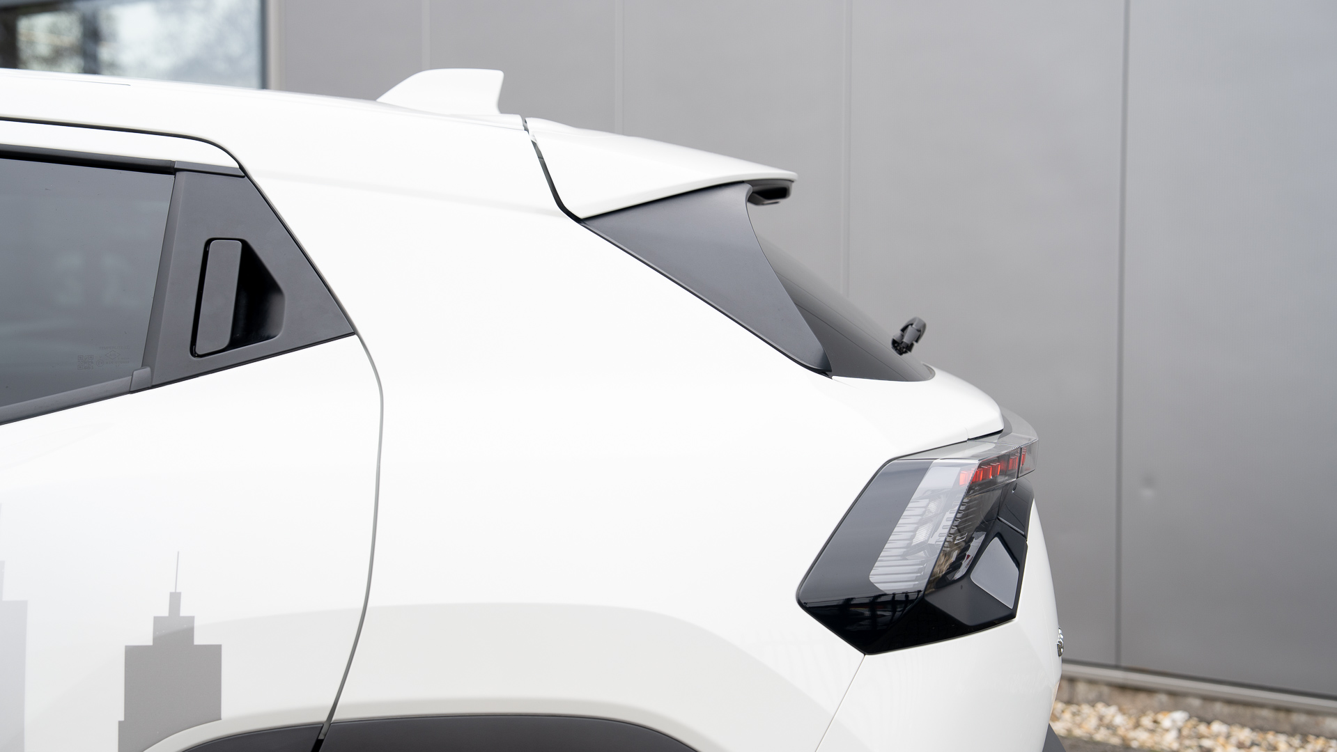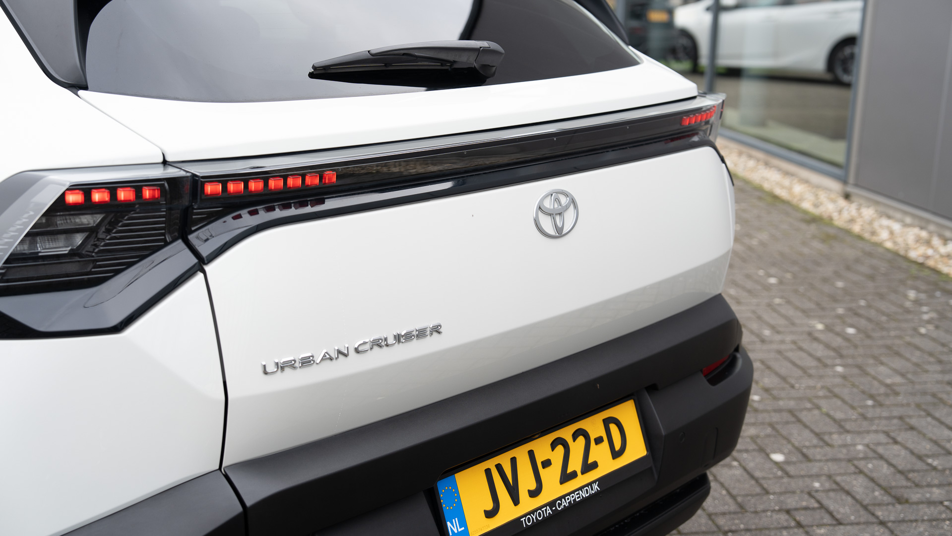 Zowel de zijlijn als de achterkant zijn vrijwel identiek aan de eVitara van Suzuki, al zijn de achterlichten bij Toyota wat anders ingedeeld.