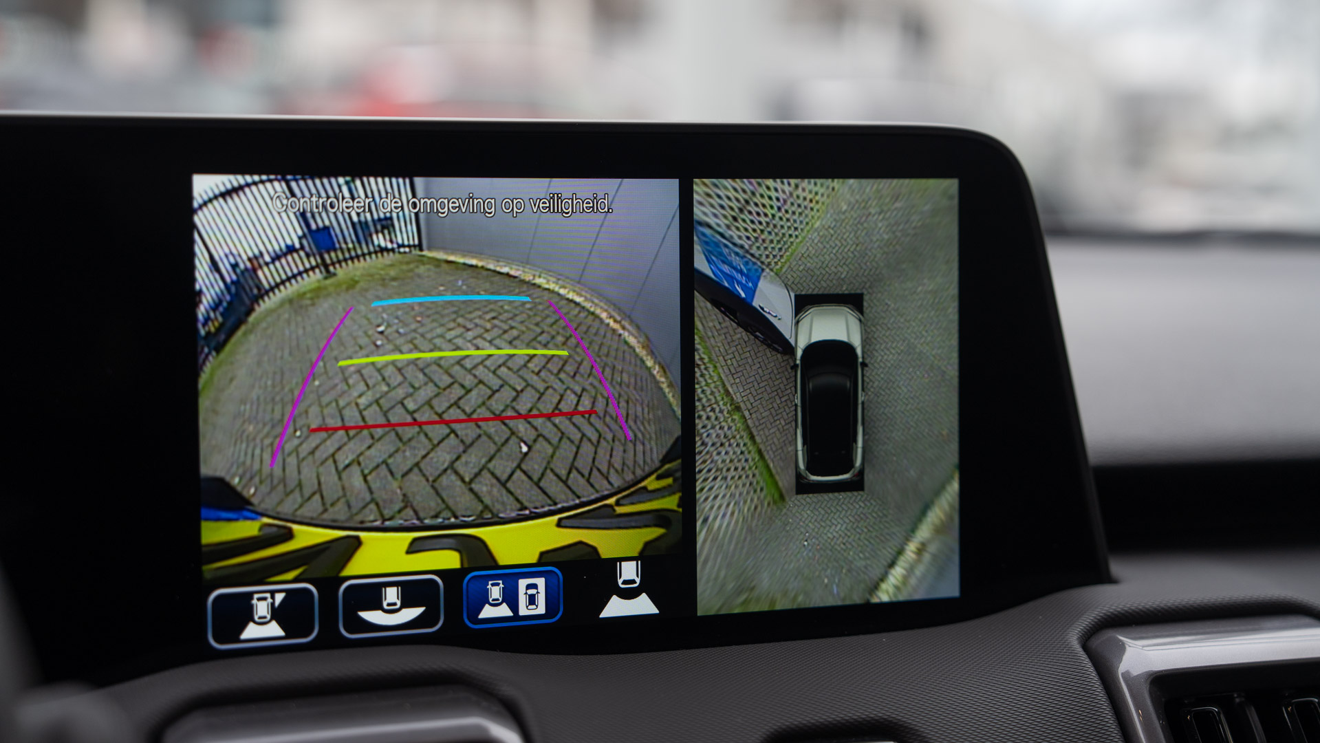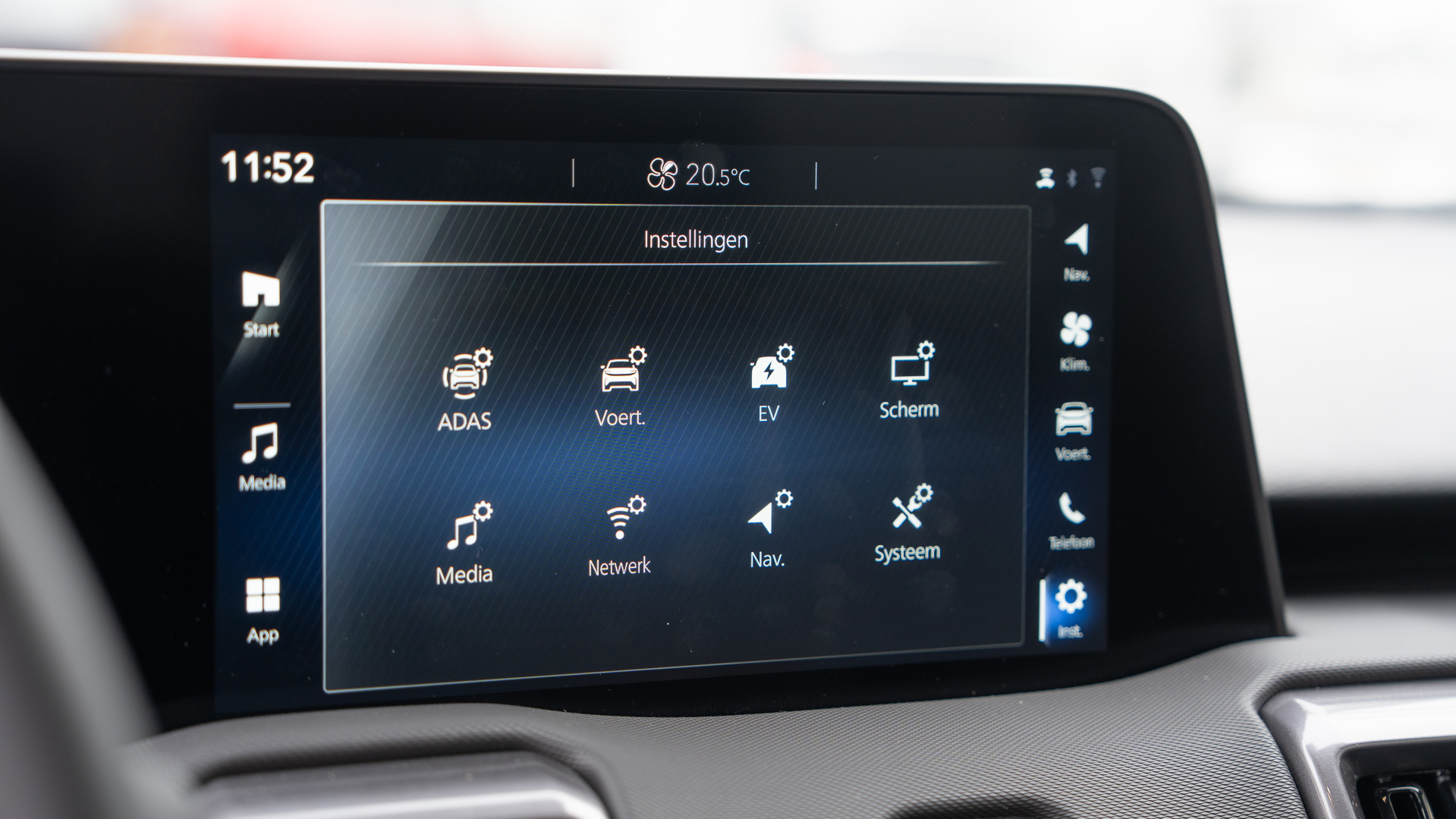 Plaats nemen is natuurlijk een makkie bij zo’n SUV. Voor mijn neus twee schermen, het instrumentenpaneel geeft alle nodige informatie, het infotainmentscherm wordt aangestuurd door Apple CarPlay en Android Auto. Via het touchscreen kunnen er veel functies worden opgezocht, maar ik ben weer blij met de fysieke knoppen voor de bediening van de klimaatbeheersing en van het geluid van de radio.