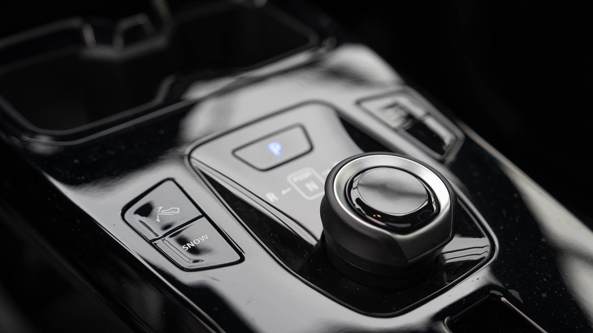 De selectiehendel voor de automaat zit keurig binnen handbereik op de middenconsole plus nog wat gemakkelijk te bedienen knoppen, o.a. voor de rijmodi.